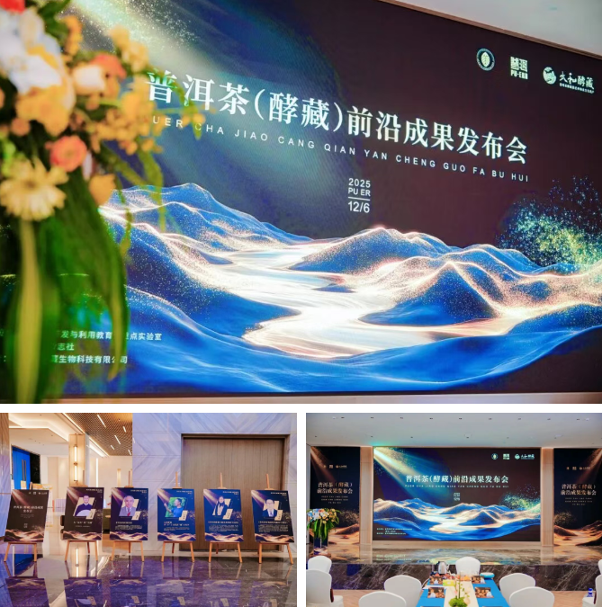 12月6日,在2025中国(普洱)国际咖啡博览会 普洱茶博览交易会开幕期间,举办了普洱茶(酵藏)前沿成果发布会。云南普洱茶厂有限责任公司董事长太俊林作了“太和酵藏:从‘存’于自然,到‘藏’于科学”的主题发言,阐释了普洱茶的仓储现代科学化的历程,结合“太和酵藏”的实践经验,分享了普洱茶在酵藏过程中如何精准地呈现一杯茶汤。