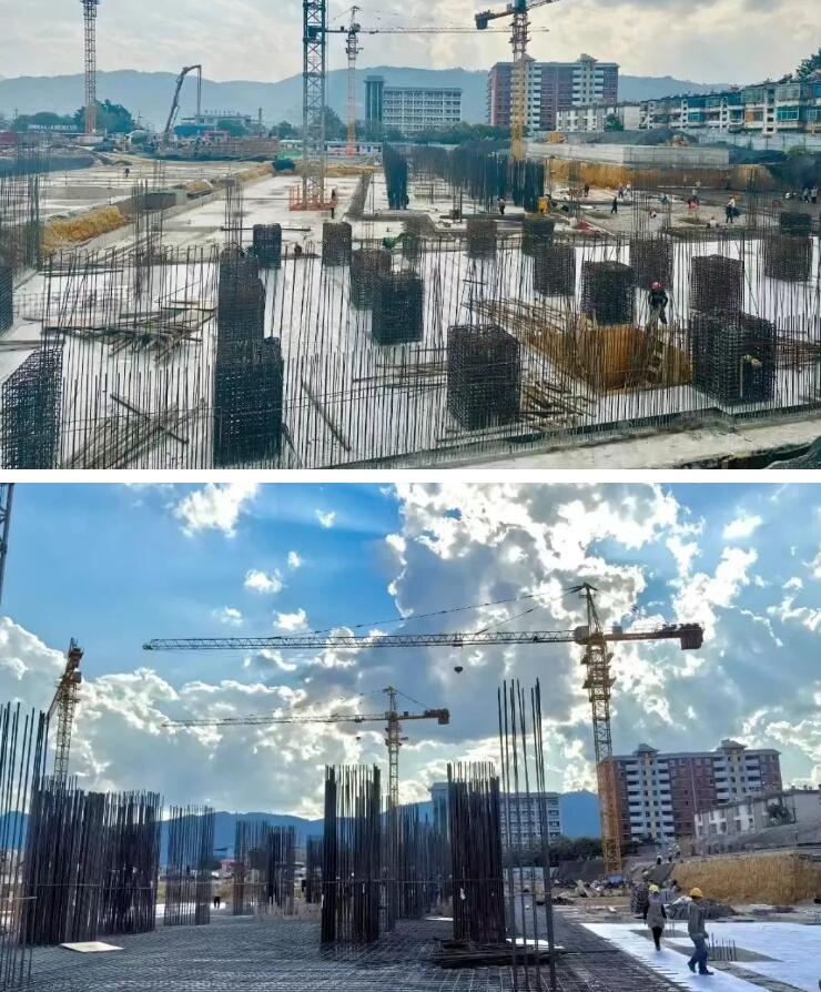 新年伊始,澜沧县住建局坚持深入一线、深入工地,对标对表找差距,全面摸排了解项目建设中的难点、堵点,着力协调解决问题,以紧锣密鼓的节奏保障铅矿棚户区改造安置房项目按照序时进度高质量推进。在建设项目的施工现场,只见塔吊林立、长臂挥舞,工程车辆往来穿梭,百余名建设者正有序安全开展改建工作、奋战正酣,现场一片繁忙。从高处俯瞰,小区居住框架和高低错落建筑形态造型已经显现,建设现场日新月异。