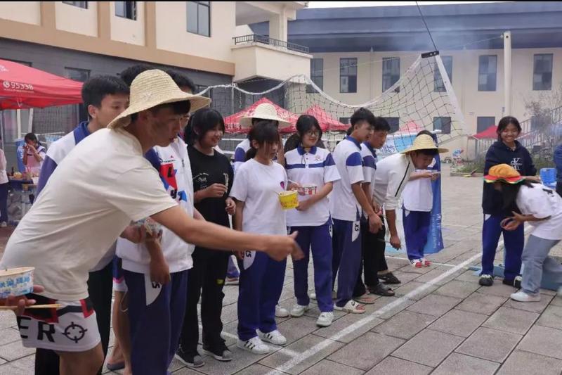 澜沧县第一中学的冬季运动会也热闹非凡,除了传统的体育竞技外,学校增设了一些趣味性比赛,如男女足球对抗赛、排球趣味挑战等,让更多的同学有机会参与其中,享受运动的乐趣。最受欢迎的还是美食节活动,同学们亲手制作了各种美味佳肴,柠檬凉粉、凉拌芒果、雪碧水果捞、包烧鱼烧烤等,现场还设有套圈游戏和售卖鲜花的小摊位,“摸你黑”游戏也悄然上演,丰富多彩的活动给大家增添了不少欢声笑语。