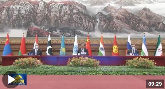 △当天下午,习主席在北京人民大会堂以视频方式出席上合峰会。(总台央视记者范一鸣拍摄) 02 一个“回答”:各国人民对美好生活的向往就是我们的追求 每次出席上合峰会,习近平主席都发表重要讲话,为上合组织发展壮大擘画蓝图。 在今年的峰会上,习主席发表了题为《牢记初心使命 坚持团结协作 实现更大发展》的重要讲话。