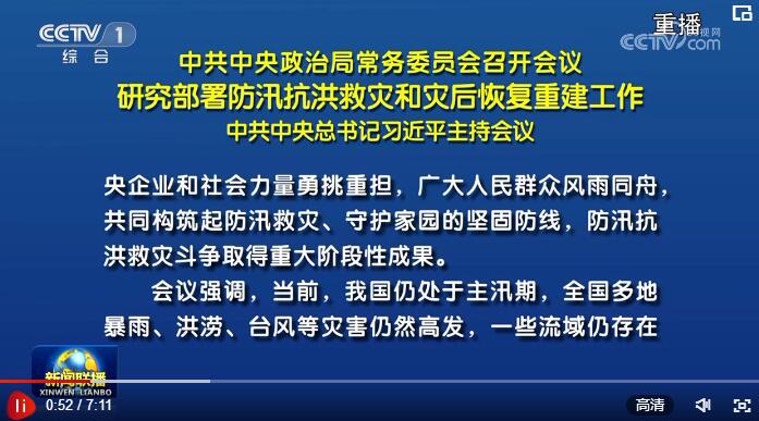 中共中央政治局常务委员会召开会议 研究部署防汛抗洪救灾和灾后恢复重建工作 中共中央总书记习近平主持会议