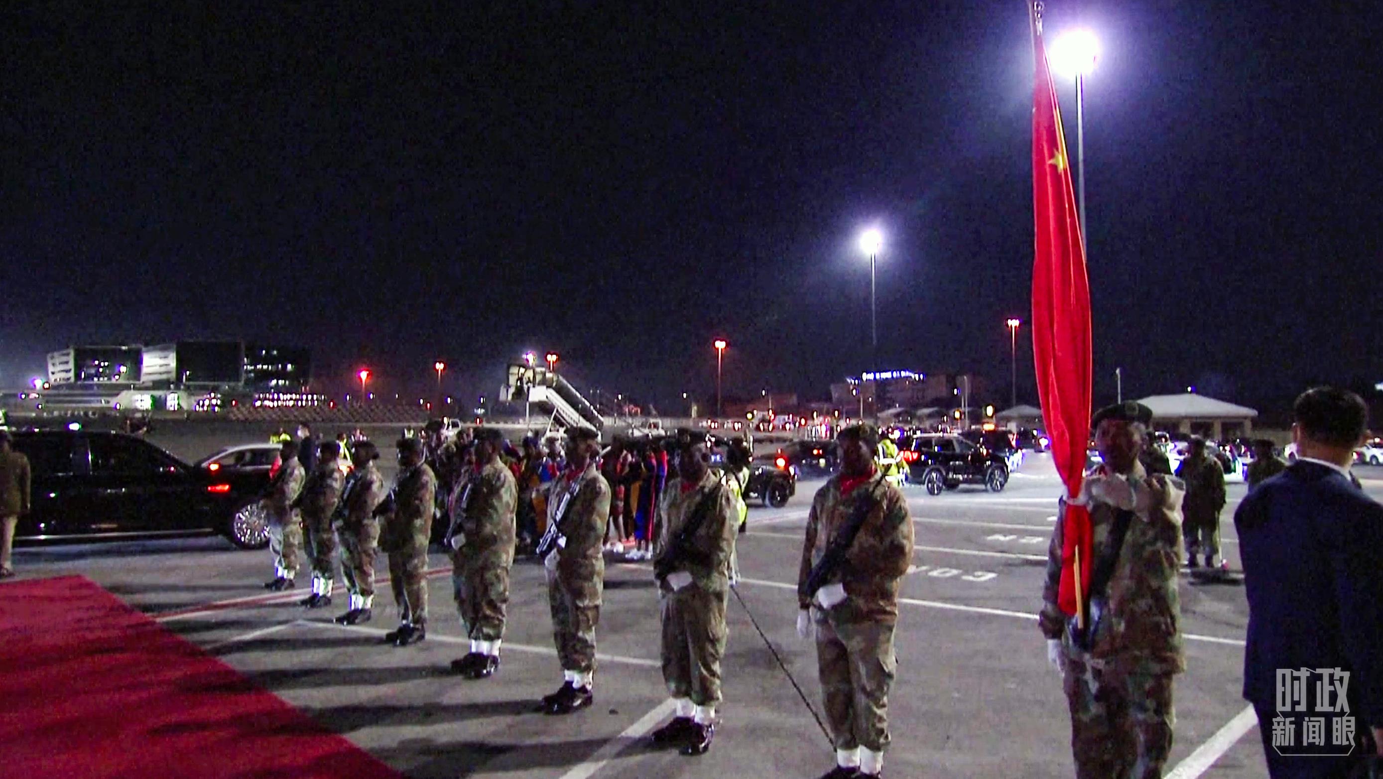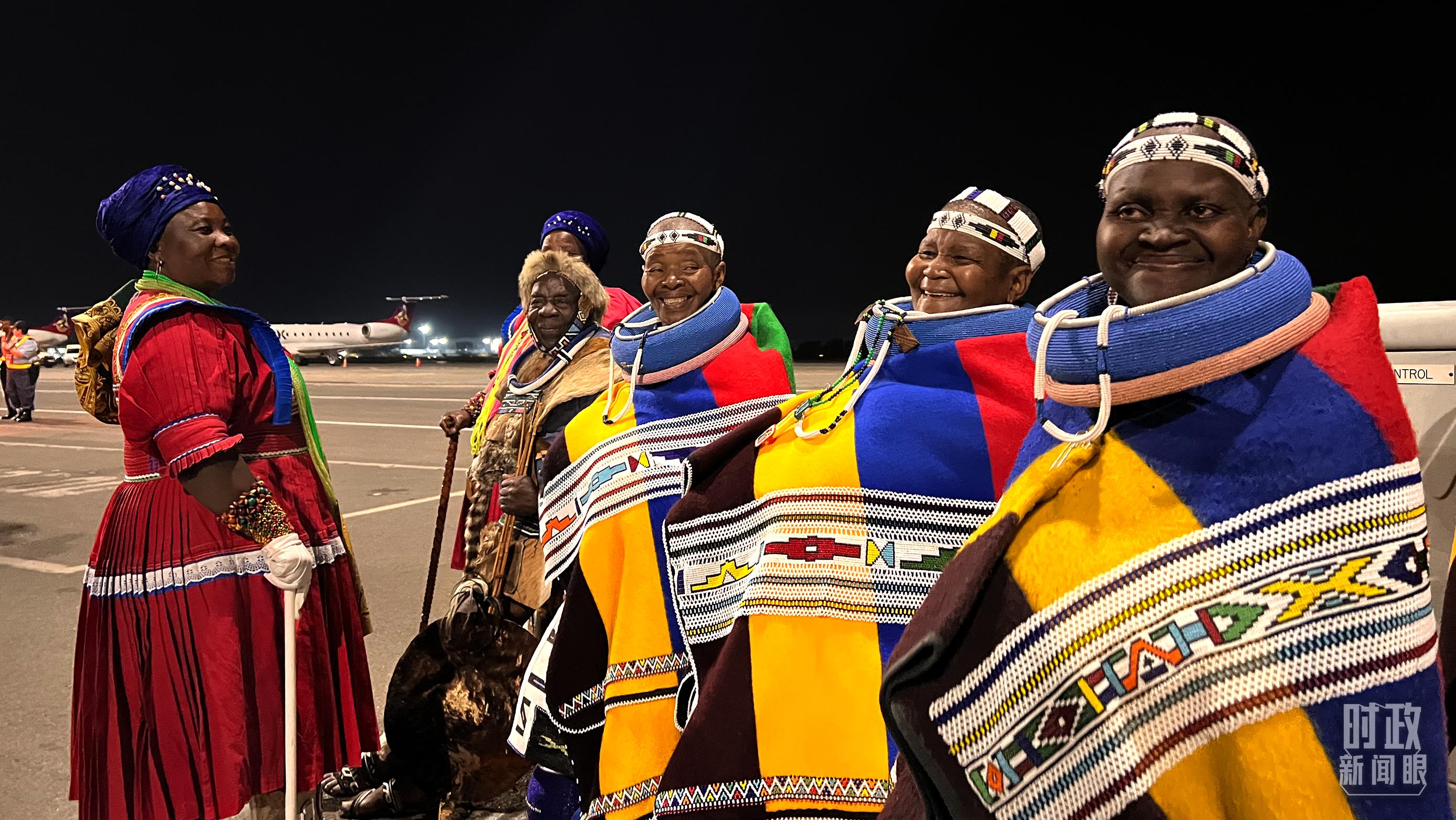 △这是习近平乘坐的专机。(总台央视记者钟锐拍摄) 南非以高规格礼遇,热情欢迎习主席这位老朋友。 现场礼兵持枪致敬,身着民族服装的民众跳起奔放舞蹈。拉马福萨总统率多名政府高级官员,亲自到机场迎接。 习主席在机场发表书面讲话,代表中国政府和中国人民,向南非政府和南非人民致以诚挚问候和良好祝愿。