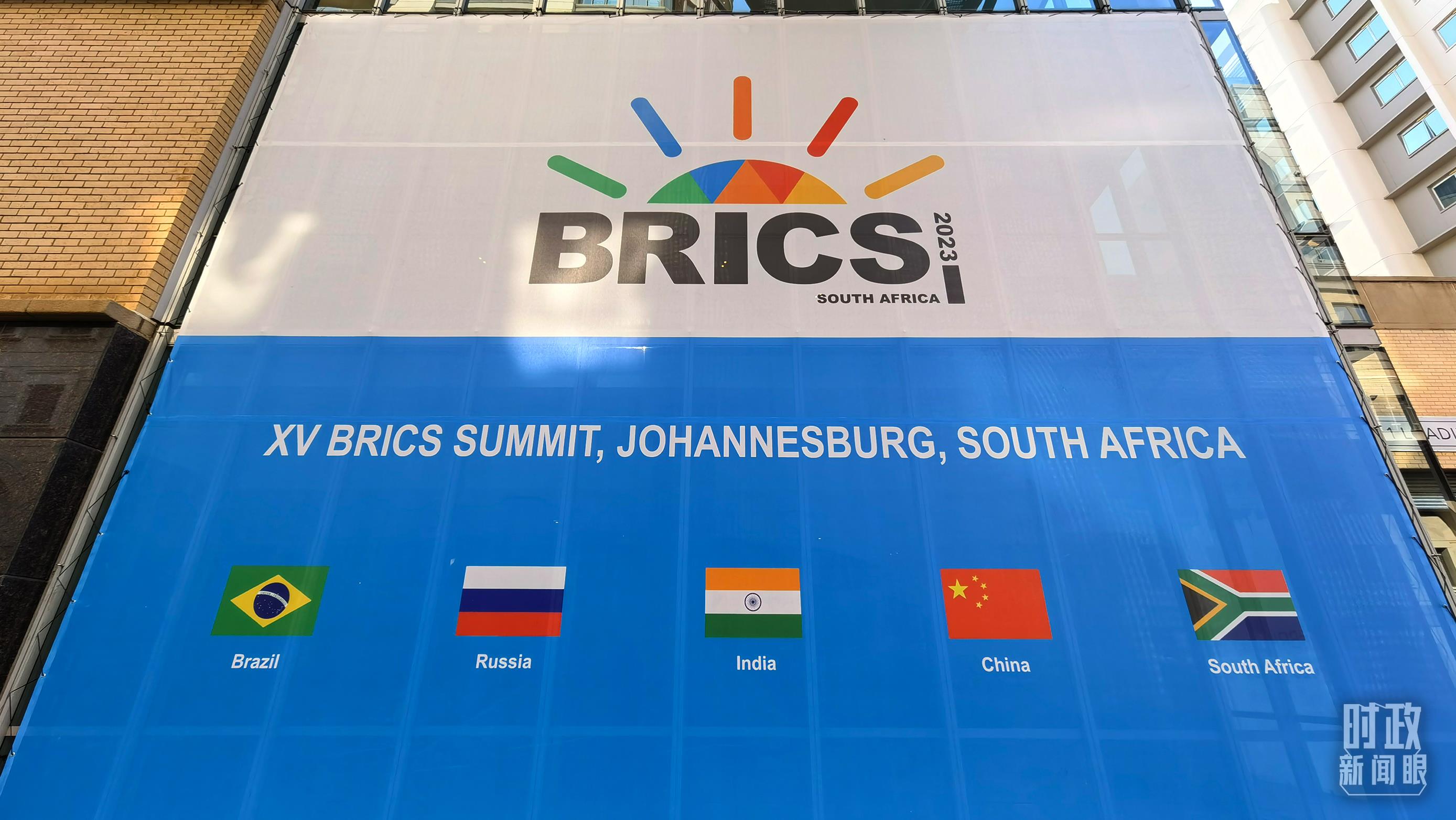 △约翰内斯堡,金砖峰会海报。(总台央视记者韩锐拍摄) 此次访问之际,面对越来越多的国家希望叩开“金砖之门”,习主席在机场书面讲话中表示,相信这次金砖国家领导人会晤将成为金砖合作机制发展历程中的重要里程碑,把发展中国家团结合作提升到更高水平。 第15次会晤,第15次智慧凝结。此次约翰内斯堡会晤,将发出更加响亮的金砖之声。