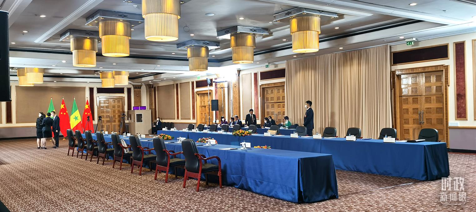 △23日下午,4场会见在这里举行。(总台央视记者郭鸿拍摄) 中国和塞内加尔是中非合作论坛共同主席国。2018年7月,习主席访塞期间,萨勒总统向习主席授予该国最高荣誉勋章。 在此访之际发表的署名文章中,习主席明确表示,中方将继续推动非盟加入二十国集团在今年取得实质性进展。在同萨勒的会见中,习主席再次表达这一立场。萨勒感谢中方率先公开支持非盟加入二十国集团。