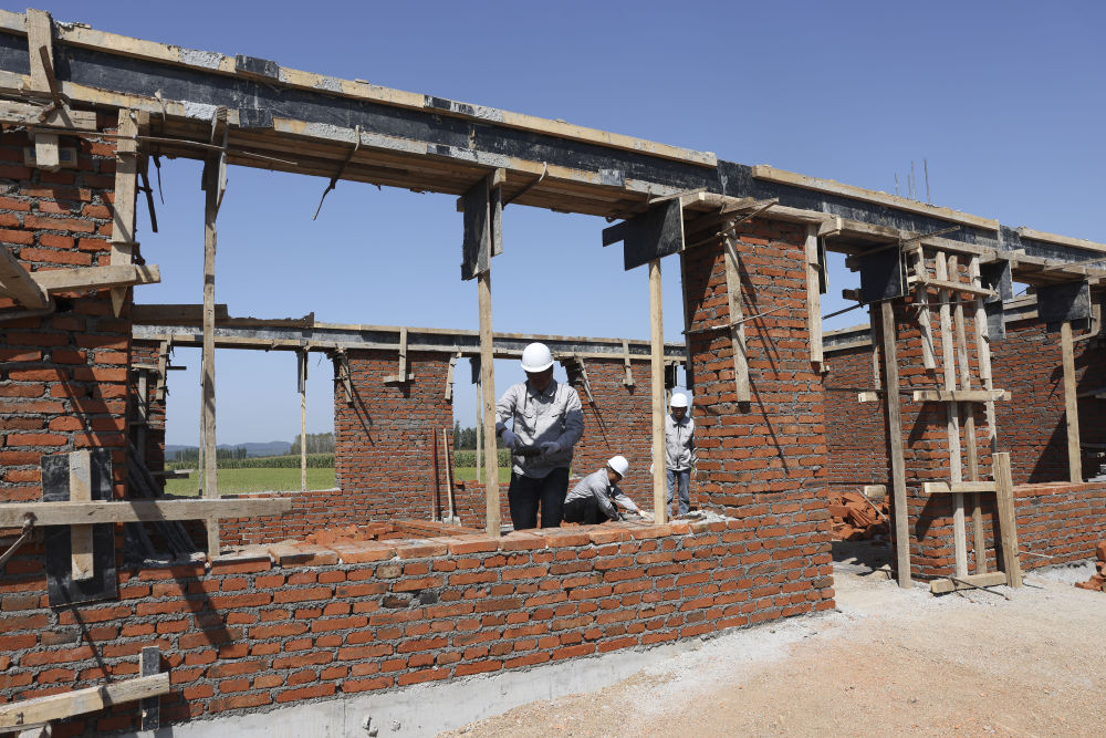 9月7日,在黑龙江省尚志市老街基乡龙王庙村,工人在重建房屋。
