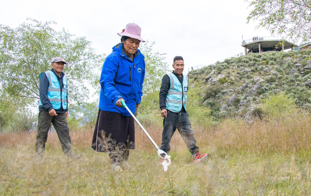 白玛乔(中)正在工作中。(丁增尼达摄) 今年年初,白玛乔邻居家的窗户玻璃被弹弓打坏,她和村民们担心使用弹弓的人会伤害湿地中的珍稀鸟类。大家立刻寻访周边村民,并且增加了湿地巡逻的次数,还利用社交网络发布提示。 白玛乔说:“夏季的时候,为防止河中沙洲有人盗砂、钓鱼等,我们管护员必须划着村里集资买的牛皮船去查看,哪怕天气不好也不能有半点马虎。” 随着生态保护红线划定和湿地公园建设推进,当地曾经的砂石厂关闭了,村民的生活也在发生变化—— 之前这里的村民放牧没有规划,大量养殖的牛羊造成植被破坏。现在村民都放下牧鞭,有的从事生态旅游业,有的发展起藏鸡养殖场、生态果园等产业。村民每年还能收到国家发放的生态补偿资金,生活越来越好。 更重要的是,人们保护生态环境的意识也提升了。以前牲畜粪便无人打扫,现在村民们都会收回家中做肥料;以前村民习惯随手丢垃圾,现在会主动捡起各种杂物…… “雅尼湿地的生态越变越好,看到整洁的环境,我心里很舒坦。我给孩子们认真讲述这些年来管护工作中发生的故事,更会叮嘱他们,未来一定要把雅尼湿地建设得更加美丽。”白玛乔说。