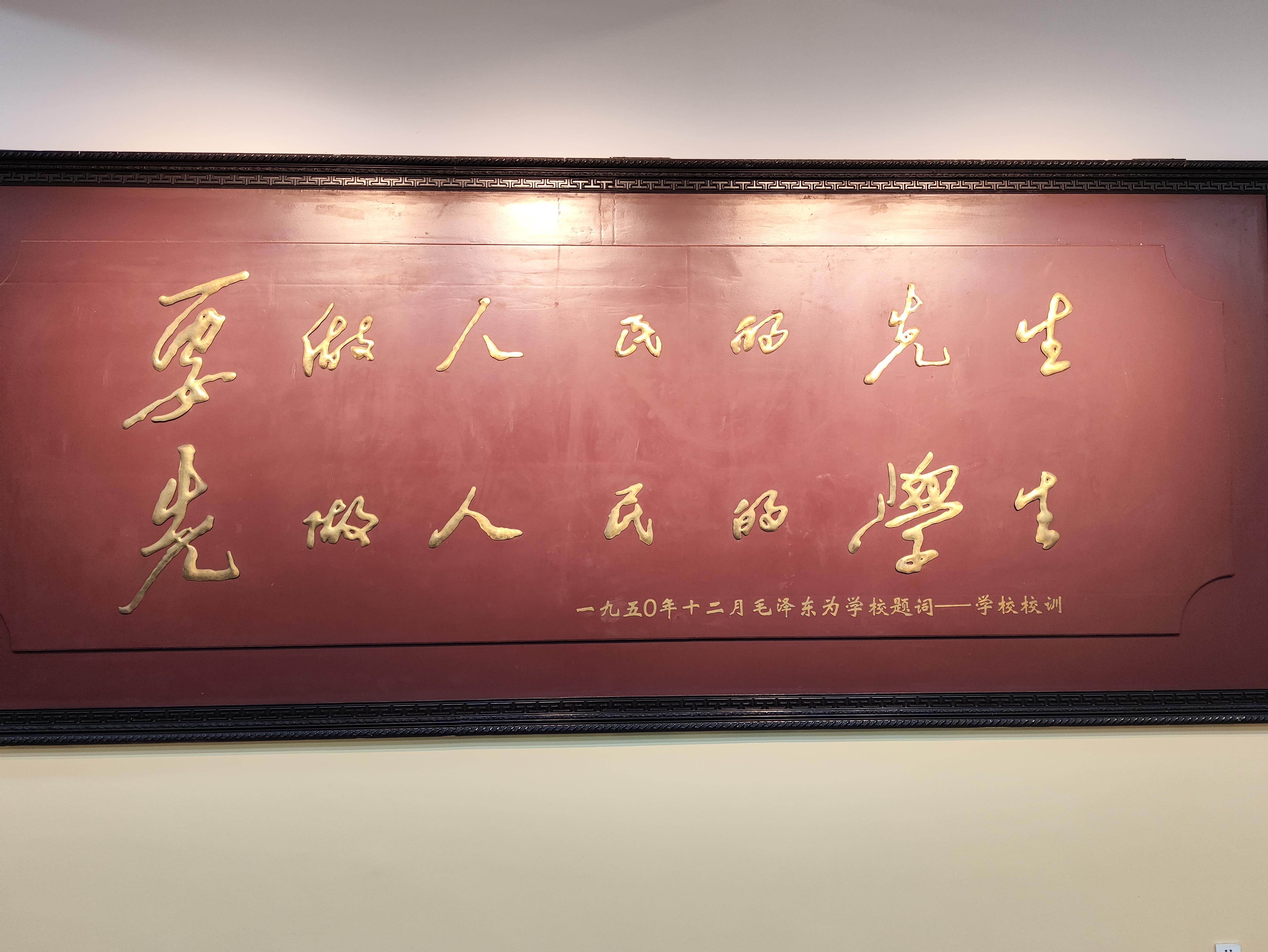 △湖南第一师范学院(城南书院校区)大礼堂。(总台央视记者范凯拍摄) 百年大计,教育为本。 习近平总书记始终心系教育,要求“把立德树人的成效作为检验学校一切工作的根本标准”。他强调,“人无德不立,育人的根本在于立德。这是人才培养的辩证法。办学就要尊重这个规律,否则就办不好学。” “要做人民的先生,先做人民的学生” “要做人民的先生,先做人民的学生。”这是湖南第一师范的校训。 学校始终践行校训精神,站稳人民立场,恪守为民情怀。 新中国成立之初,全国5.5亿人口中有4亿多人是文盲,“扫盲”成为国家迫切的任务。湖南一师坚持为“人民的文教工作服务”,培养了数十万学子,扎根基础教育一线,接力担当从教育救国、教育报国到教育兴国的历史使命。