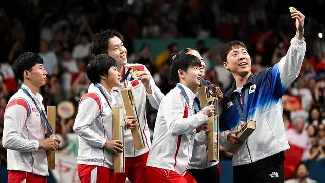 △巴黎奥运会乒乓球混合双打颁奖仪式结束后,中朝韩运动员聚到一起合影的场景,在朋友圈刷了屏。 团结是奥林匹克精神的重要组成部分,“更团结”被写入奥林匹克格言。“团结协作”也是中华体育精神的主要内容之一。当奥林匹克精神与中华体育精神在巴黎奥运会相遇,我们见证了两大精神的完美融合。 在乒乓球混合双打的颁奖现场,中朝韩三国年轻选手们合影留念,这超越体育、跨越国界的一幕获得众多观众点赞。 中国体育健儿与来自世界各国各地区的运动员相聚五环旗下,用行动践行着奥林匹克格言中“更团结”的追求。比赛结束后主动关心对手伤情,向获得佳绩的对手表示祝贺,与各国各地区的运动员交心交流……中国体育健儿实现了比赛成绩和精神文明的双丰收。 习近平总书记点赞:“中国体育代表团的优异成绩,将中华体育精神和奥林匹克精神发扬光大,让中华民族精神和时代精神交相辉映,生动诠释了新时代中国精神。” “自信乐观、热情友好的阳光气质”