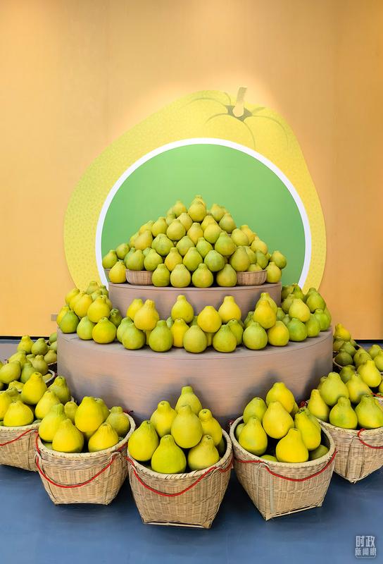 △纪念馆内展陈。(总台央视记者陆泓宇、程铖拍摄) 知所从来,方明所往。 2022年10月27日,总书记在瞻仰延安革命纪念地时深情地说,全党同志要坚持正确政治方向,坚决贯彻党的基本理论、基本路线、基本方略,坚决落实党中央决策部署,把老一辈革命家开创的伟大事业继续推向前进。 此次来到革命老区梅州,总书记参观叶剑英纪念园,关注当地弘扬革命文化等情况,意蕴深长。 03 考察金柚基地:“柚”业富民谋振兴 露浴梧楸白,霜催橘柚黄。考察当天正值立冬,又到一年丰收时。 位于梅县区雁洋镇的南福金柚种植基地,柚林如海,果实挂满枝头。习近平总书记梅州市考察第二站来到这里。