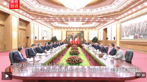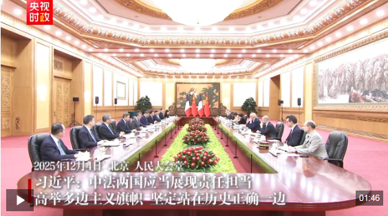△长安街上悬挂的中法两国国旗。(总台央视记者韩锐拍摄) 今年是中法关系“新甲子”的开局之年、中欧建交50周年、世界反法西斯战争胜利和联合国成立80周年。 在4日的会谈中,习主席指出,中法都是有远见、有担当的独立自主大国,是推动世界多极化、促进人类团结合作的建设性力量。中方愿同法方一道,坚持平等对话、开放合作,让中法全面战略伙伴关系在“新甲子”走得更稳更好。 △独家视频丨习近平:让中法全面战略伙伴关系在“新甲子”走得更稳更好 03 特殊的关系 凝聚合作共识 60年,在中国传统历法中是一个甲子的轮回,寓意着承前启后、继往开来。 今年是中法建交61周年。中法关系“新甲子”如何开好局、迈好步? 4日至5日,从北京到成都,习近平主席和马克龙总统深入沟通,就新时期进一步发展中法关系作出战略指引。
