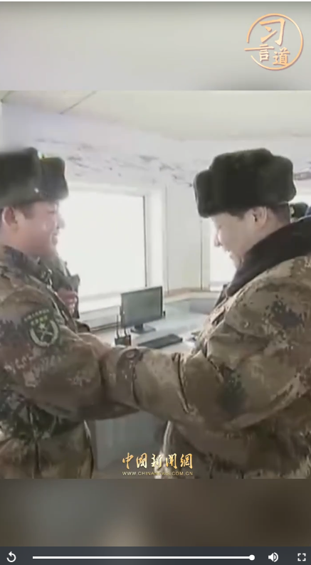 “我和你们一起在这里站岗。”2014年1月26日,习近平主席来到内蒙古阿尔山,冒着零下30多摄氏度的严寒,迎风踏雪慰问在边防线上巡逻执勤的官兵。统帅与士兵心连心,一步一履总关情。士兵,始终是习近平主席心头的牵挂。