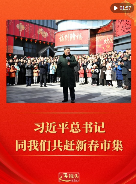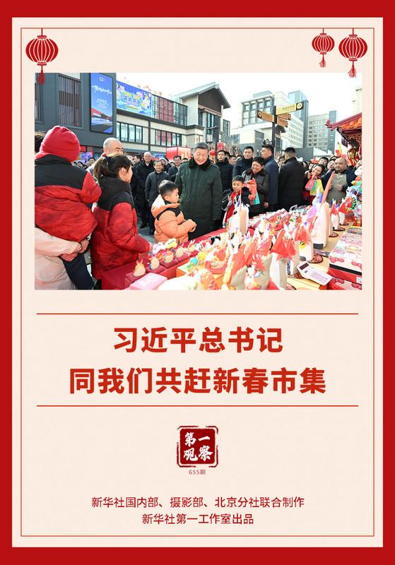 “过年对老百姓来说是大事”。食品安全始终是习近平总书记记挂的事。 春节之际,贵州超市的熟食区前,总书记叮嘱:“一定要注意食品卫生,标明生产日期,不能卖过期食品”;沈阳商场的摊位边,要求市场管理人员“保障食品安全”;考察内蒙古食品企业,强调要生产出高质量的放心食品…… 殷殷叮嘱,守护的不仅是老百姓“舌尖上的安全”,更是人民群众对年节质朴的期盼——“吃得放心、吃得舒心”。 一蔬一饭,关乎万家安康。“‘菜篮子’、‘米袋子’、‘果盘子’是民生大事。老百姓过节过得开心,也预示着一年好的开端。” 年货市集,常常勾起习近平总书记的回忆。此次在北京隆福寺考察,习近平总书记愉快地向大家讲起年少时多次到隆福寺的情景。 一年前,沈阳的“新春市集”里,总书记还聊起年夜饭:“东北的年夜饭,是不是都有酸菜白肉、小鸡炖蘑菇?这些东北菜我也爱吃。”看到热气腾腾的包子出锅,总书记说道:“这个头儿,吃一个就饱了吧!记得看过一本小说上一段描写,‘最美好的日子,吃大饺子一口咬出个小牛犊来’。” 年味里,有化不开的乡愁。感受着红红火火的东北年味儿,总书记高兴地说:“今天来到这里,把过去的回忆都勾起来了。” (三)