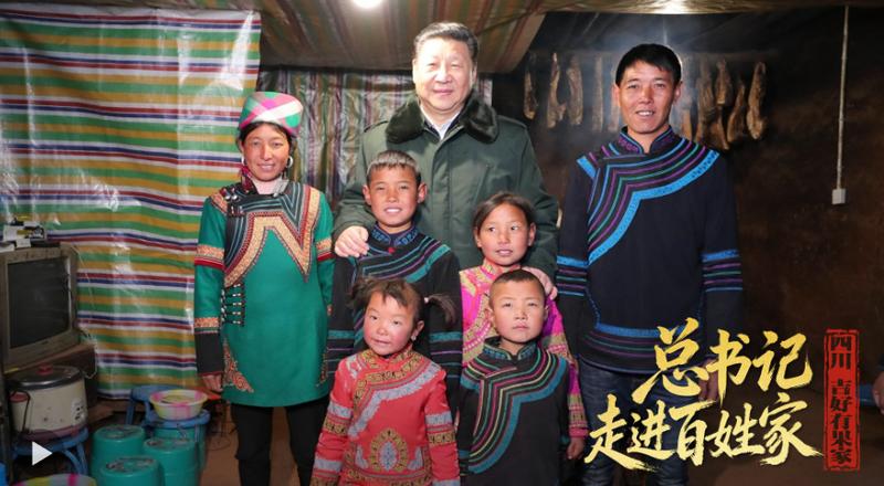 “柴米油盐、三餐四季,每个‘小家’热气腾腾,中国这个‘大家’就蒸蒸日上。” 党的十八大以来,习近平总书记始终把人民放在心中最高位置,每到地方考察调研时,总是一次次推开百姓家门,听民情民意、问民生冷暖。 2018年春节前夕,习近平总书记来到四川省凉山彝族自治州昭觉县三河村。在村民吉好也求家,他关切地掀开床褥,摸摸被子,仔细察看、询问他们的生活情况。吉好也求的女儿吉好有果当年9岁,给总书记唱了一首歌《国旗国旗真美丽》,总书记带头鼓掌。临走时,总书记对吉好也求一家人说:“看着你们生活一天一天好起来,我很高兴。也希望你们的孩子们健康成长,将来一个一个都很有出息,有文化,有知识。”这一幕吉好有果记忆犹新。第二年,吉好也求一家和另外28户人家作为首批搬迁户,迁入2公里外的新村。 又是一年新春至,人民日报新媒体推出“总书记走进百姓家”系列视频。今天,让我们来到吉好有果的家,重温当年总书记走进她家的故事,听吉好有果讲讲她家的新日子和三河村的大变化。 |